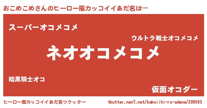 | 男性向けラノベタイトル風あだ名 | 『誰もが恐れるあのおこめこめが、ぼくの専属メイドになるようです。』 |