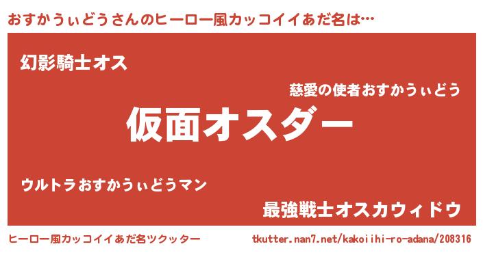 | 意味不明あだ名 | 『住所不定無職おすかうぃどう(79歳)』 |