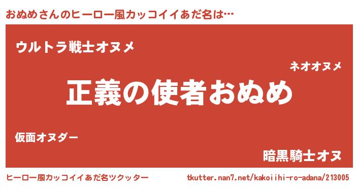 | 男性向けラノベタイトル風あだ名 | 『おまえをオタクにしてやるから、俺をおぬめにしてくれ! 』 |