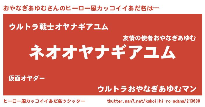 | 男性向けラノベタイトル風あだ名 | 『転生したらおやなぎあゆむだった件』 |