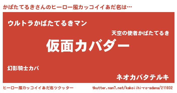 | 意味不明あだ名 | 『住所不定無職かばたてるき(7歳)』 |