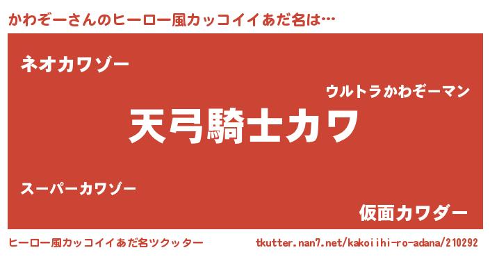 | 男性向けラノベタイトル風あだ名 | 『かわぞーの嫁は女の子じゃないと思った?』 |