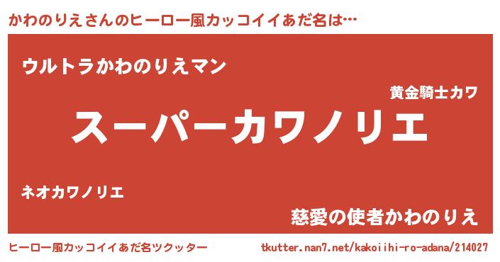 | 男性向けラノベタイトル風あだ名 | 『かわのりえの憂鬱』 |