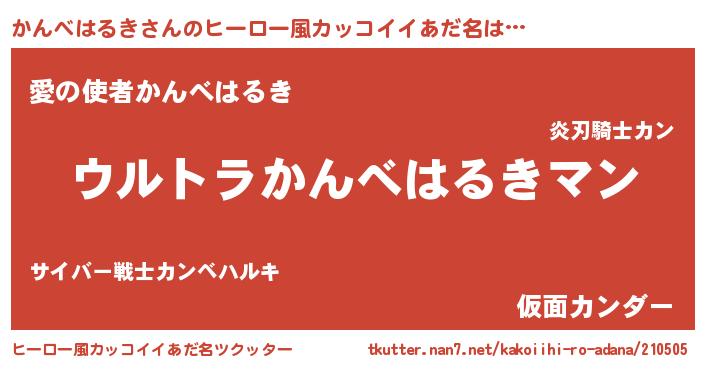 | 男性向けラノベタイトル風あだ名 | 『やはりかんべはるきの青春ラブコメはまちがっている 』 |
