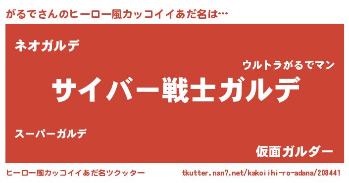 | 男性向けラノベタイトル風あだ名 | 『Re:がるでから始める異世界生活』 |