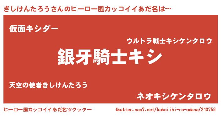 | 男性向けラノベタイトル風あだ名 | 『きしけんたろうの嫁は女の子じゃないと思った?』 |