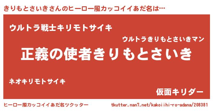きりもとさいきさんのヒーロー風カッコイイあだ名をツクッター!