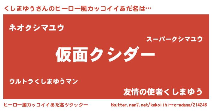 | 男性向けラノベタイトル風あだ名 | 『緋弾のクシマユウ』 |