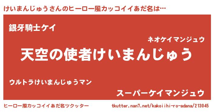 | 男性向けラノベタイトル風あだ名 | 『ノーゲーム・ノーケイマンジュウ』 |