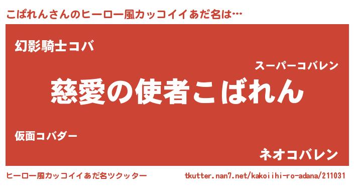 | 男性向けラノベタイトル風あだ名 | 『ノーゲーム・ノーコバレン』 |