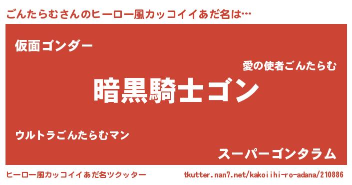 | 男性向けラノベタイトル風あだ名 | 『ダンジョンにごんたらむを求めるのは間違っているだろうか』 |