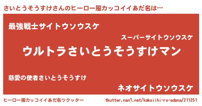 | 意味不明あだ名 | 『さいとうそうすけフォーエバー』 |