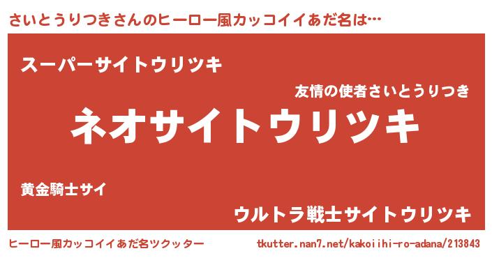| 意味不明あだ名 | 『永久保存さいとうりつき』 |