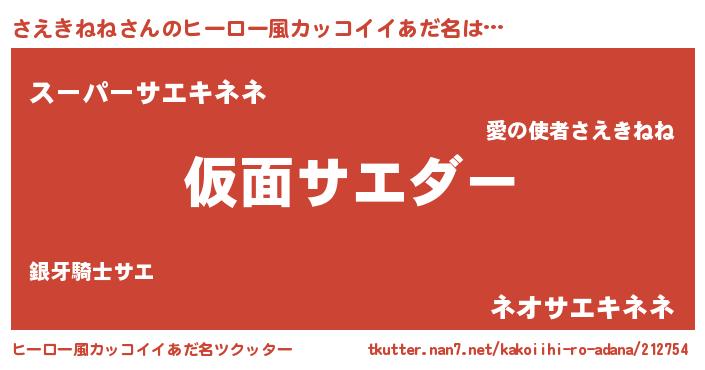 | 男性向けラノベタイトル風あだ名 | 『サエキネネスレイヤー』 |
