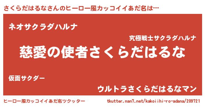 | 男性向けラノベタイトル風あだ名 | 『さくらだはるな~年齢イコール彼女いない歴の魔法使い~』 |
