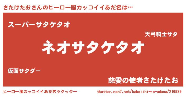 | 意味不明あだ名 | 『永久保存さたけたお』 |