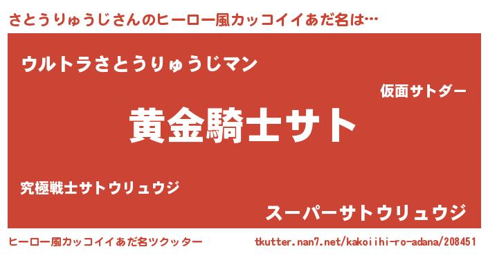 | 男性向けラノベタイトル風あだ名 | 『ダンジョンにさとうりゅうじを求めるのは間違っているだろうか』 |