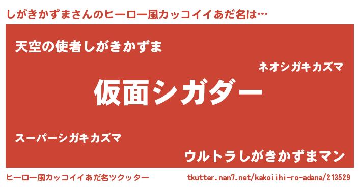 | 男性向けラノベタイトル風あだ名 | 『この素晴らしい世界にしがきかずまを!』 |