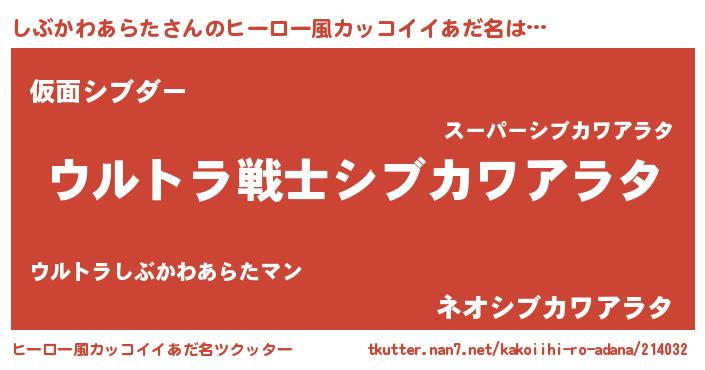 しぶかわあらたさんのヒーロー風カッコイイあだ名をツクッター!