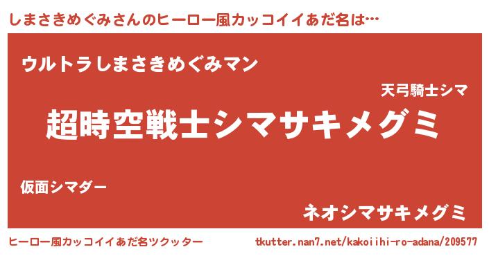しまさきめぐみさんのヒーロー風カッコイイあだ名をツクッター!