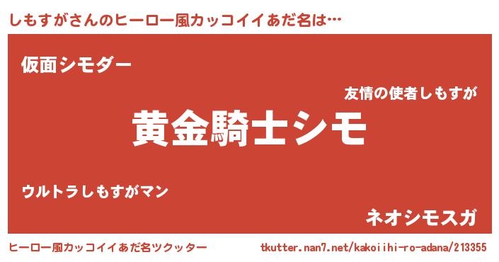 | 胡散臭い通販商品みたいなあだ名 | 『信頼と実績のサプリメント…その名も「しもすが」』 |