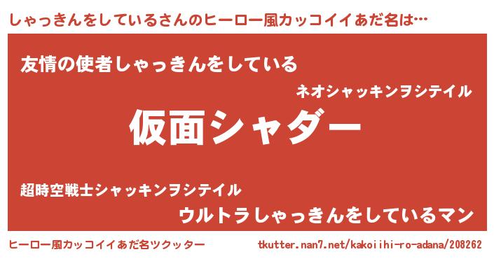 | 胡散臭い通販商品みたいなあだ名 | 『あなたにだけ特別に提供する世界で10本だけ現存している希少なブランデー…その名も「しゃっきんをしている」』 |