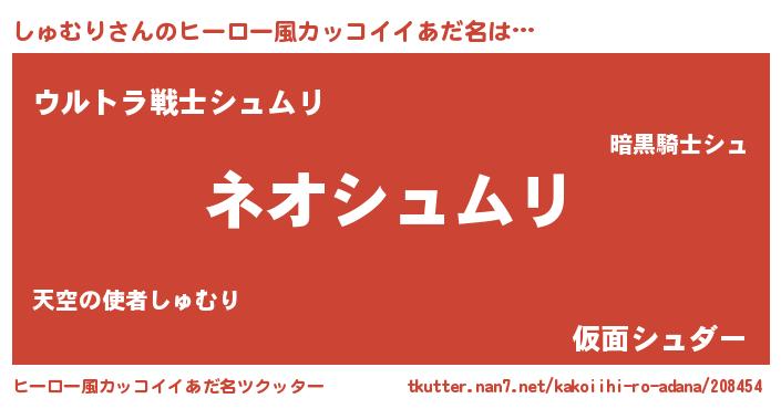 | 男性向けラノベタイトル風あだ名 | 『緋弾のシュムリ』『魔弾の王としゅむり』 |