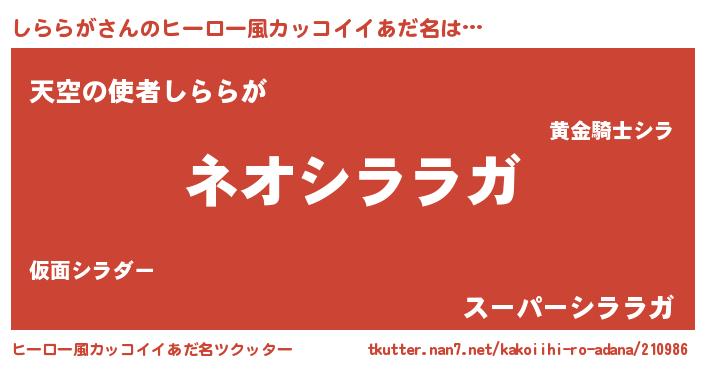 | ヘコむあだ名 | 『しららが(苦笑)』『しらっふぃ~』 |