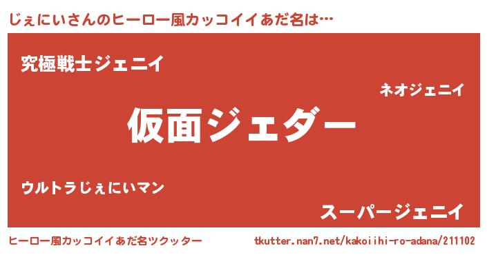 | 男性向けラノベタイトル風あだ名 | 『魔弾の王とじぇにい』『じぇにいの憂鬱』 |