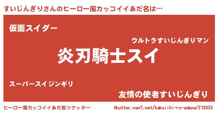 | 男性向けラノベタイトル風あだ名 | 『うちのすいじんぎりが世界を掌握している!』 |