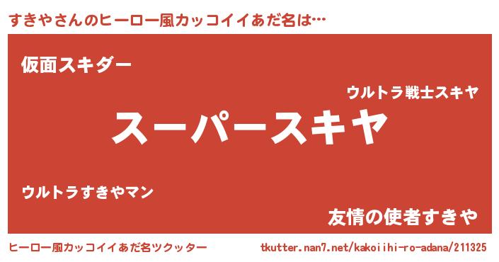 | 女子向けラノベタイトル風あだ名 | 『すきや姫と円卓の騎士』『闇のすきや』 |
