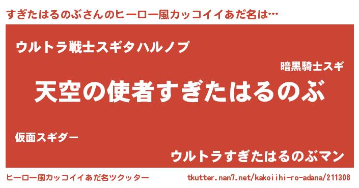 | 料理風あだ名 | 『すぎたはるのぶとほうれんそうの和風グラタン』 |
