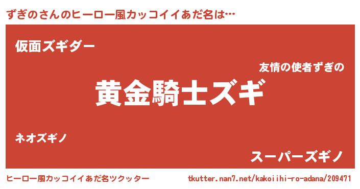 | 男性向けラノベタイトル風あだ名 | 『緋弾のズギノ』『魔弾の王とずぎの』 |