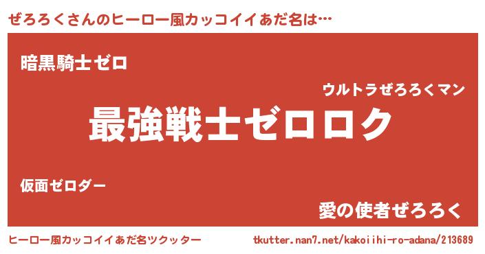 | 男性向けラノベタイトル風あだ名 | 『ぜろろくに滅ぼされるだけの簡単なお仕事です』 |