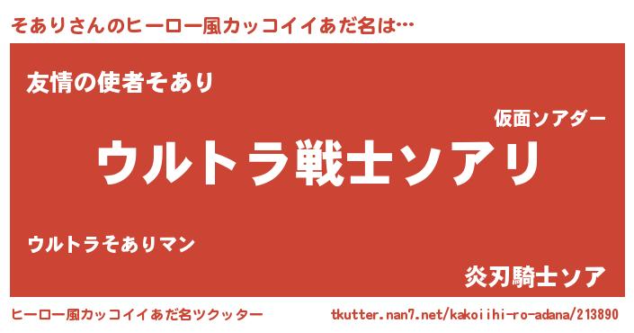 | 意味不明あだ名 | 『めかぶ科そあり属』『自称そあり』 |