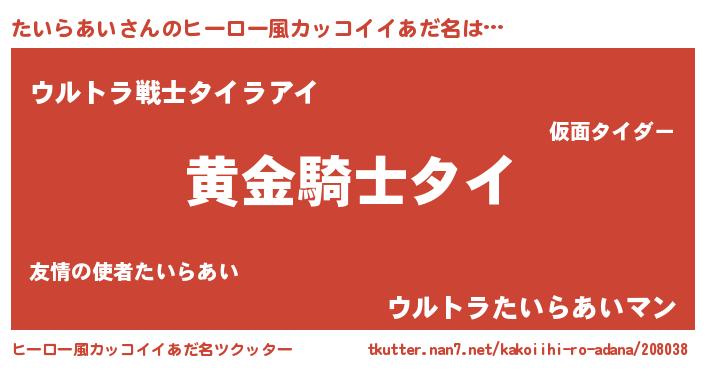 | 男性向けラノベタイトル風あだ名 | 『緋弾のタイラアイ』 |