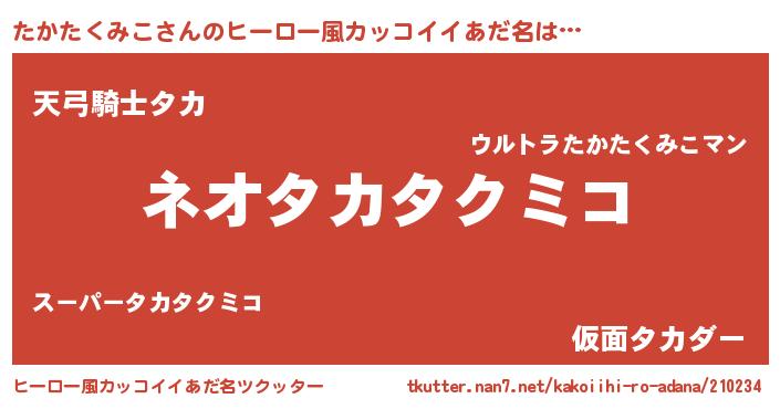 | 意味不明あだ名 | 『永久保存たかたくみこ』 |