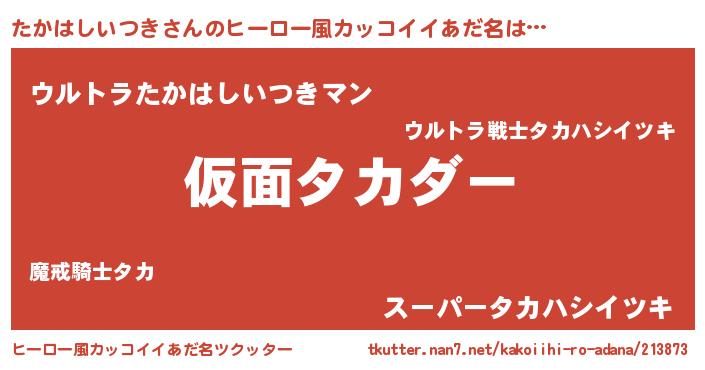 | 意味不明あだ名 | 『住所不定無職たかはしいつき(77歳)』 |