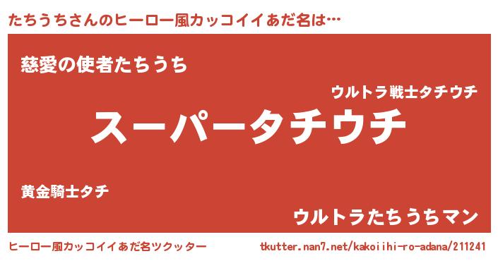 | 男性向けラノベタイトル風あだ名 | 『たちうちの憂鬱』『タチウチスレイヤー』 |