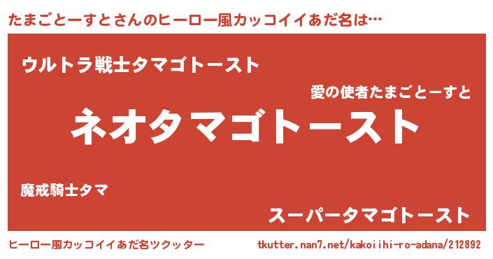 | ヘコむあだ名 | 『たまごとーすと(遠い目)』『たまっふぃ~』 |