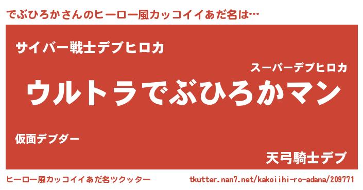 | 男性向けラノベタイトル風あだ名 | 『うちの娘の為ならば、俺はもしかしたらでぶひろかも倒せるかもしれない。』 |