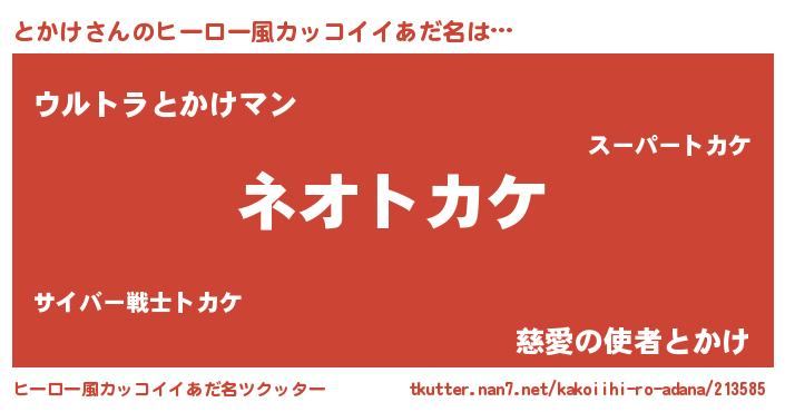 | 男性向けラノベタイトル風あだ名 | 『とかけという概念が存在しない退屈な世界 』 |