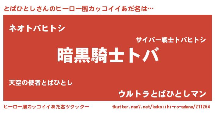 | 胡散臭い通販商品みたいなあだ名 | 『信頼と実績のサプリメント…その名も「とばひとし」』 |
