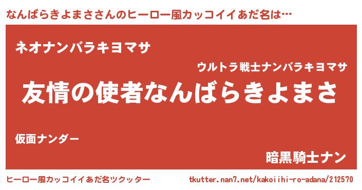 | 欧米人風あだ名 | 『アンジェラ・なんばらきよまさ』 |