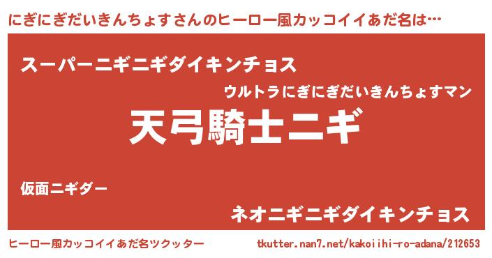 | ポケモン風あだ名 | 『ヒニギニギダイキンチョス』『ニギゴンZ』 |