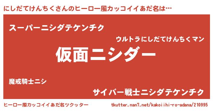 | 男性向けラノベタイトル風あだ名 | 『にしだてけんちく~年齢イコール彼女いない歴の魔法使い~』 |