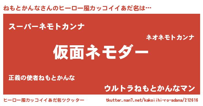 | 男性向けラノベタイトル風あだ名 | 『この素晴らしい世界にねもとかんなを!』 |