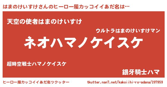 | 意味不明あだ名 | 『永久保存はまのけいすけ』 |