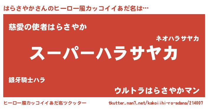 | 胡散臭い通販商品みたいなあだ名 | 『億万長者になれるブレスレット…その名も「はらさやか」』 |