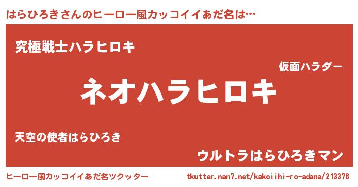 | 男性向けラノベタイトル風あだ名 | 『はらひろきという概念が存在しない退屈な世界 』 |